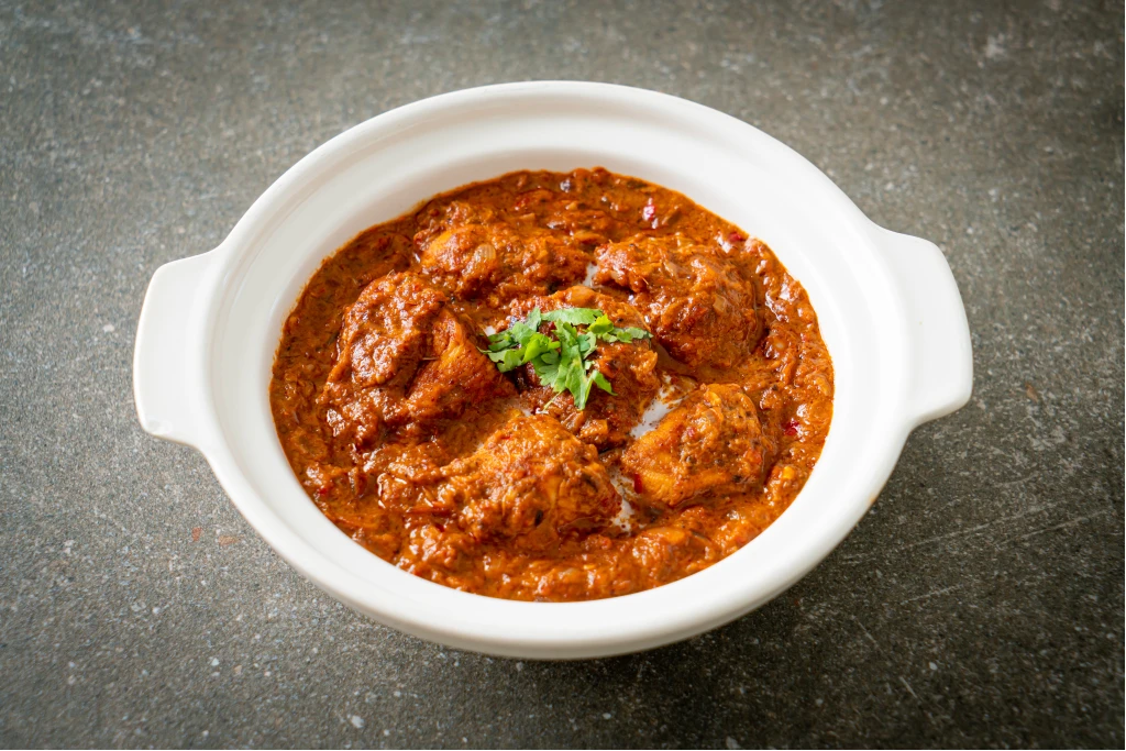 En traditional curry och tomatsås i en syrlig smak. Mellanstark